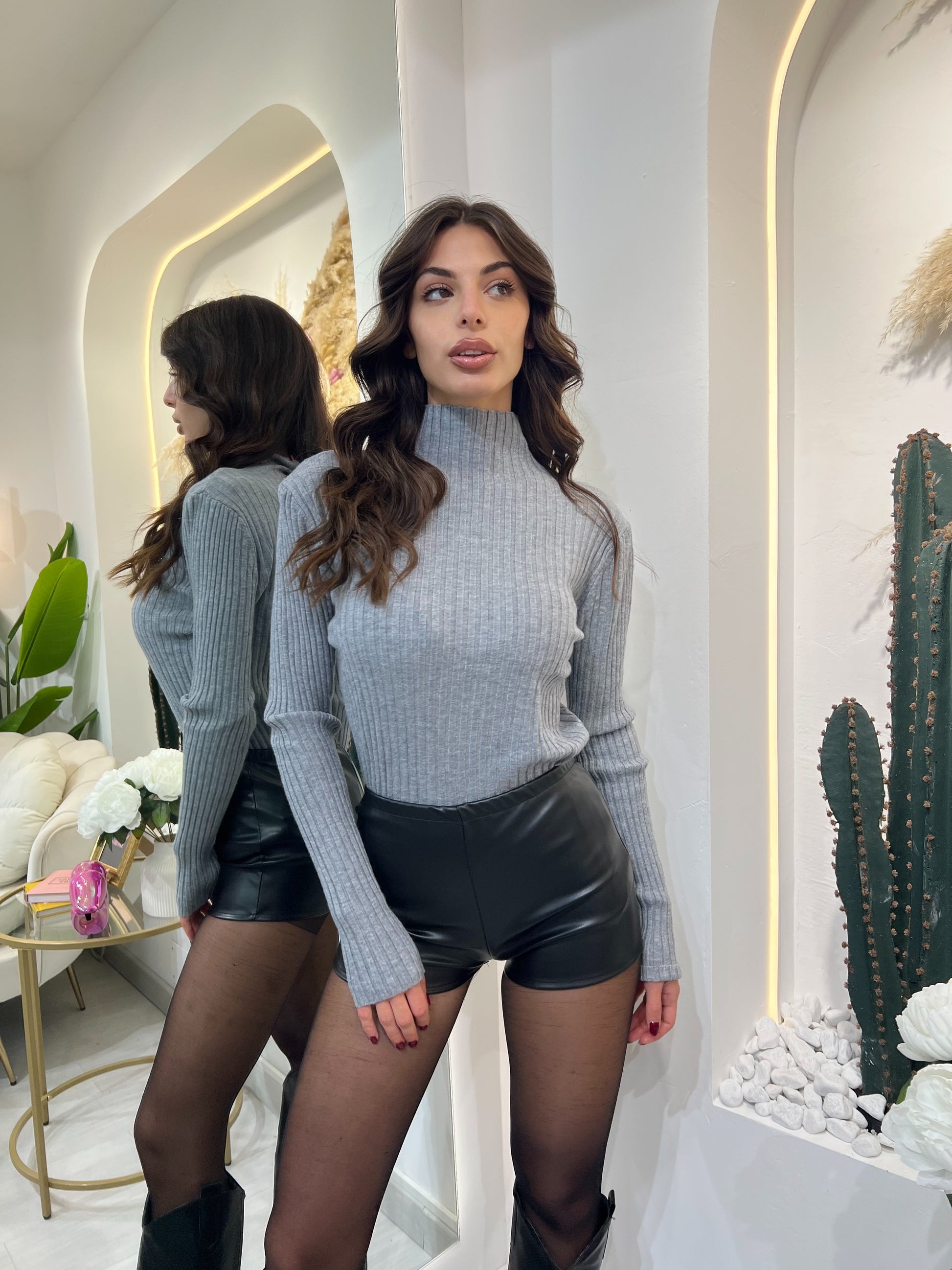 Lupetto a costine realizzato in un morbido mix di cotone e viscosa, piacevole al tatto e confortevole sulla pelle. Il modello presenta un collo alto leggermente avvolgente, maniche lunghe e linea aderente che segue con naturalezza le forme del corpo. Il tessuto elasticizzato assicura una vestibilità perfetta e un comfort assoluto per tutta la giornata.