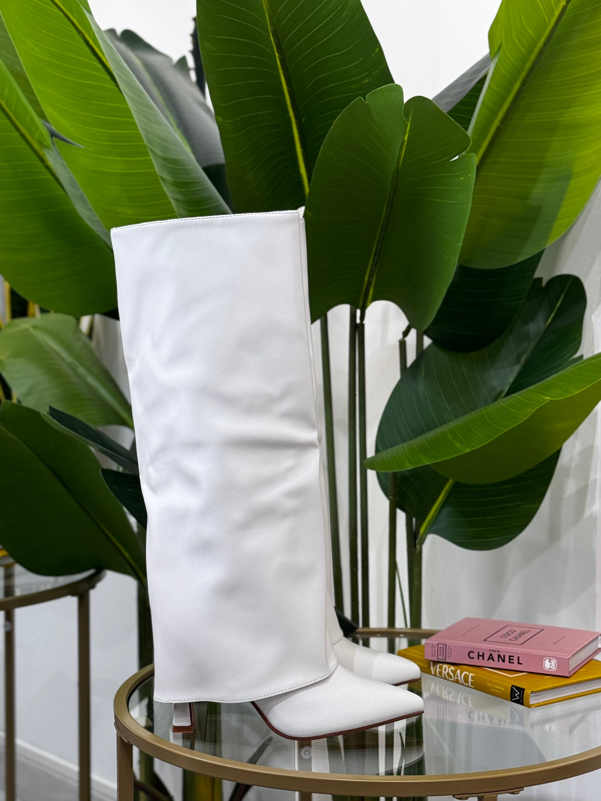 Stivale alto con tacco 8 cm, punta affusolata e gamba morbida. Struttura stabile e confortevole, ideale per un look deciso e sofisticato.